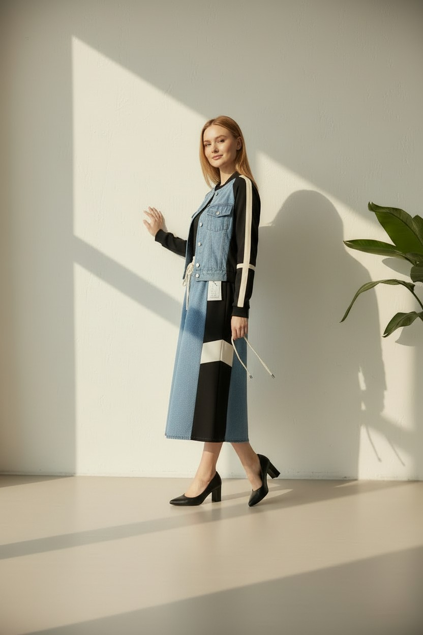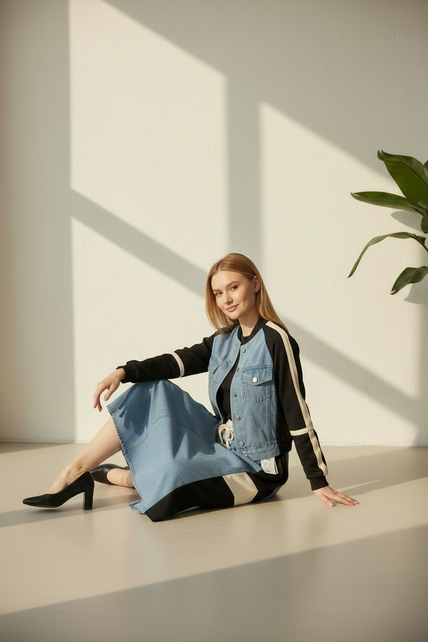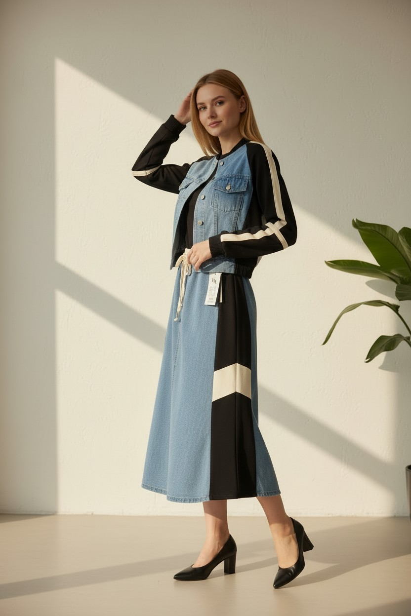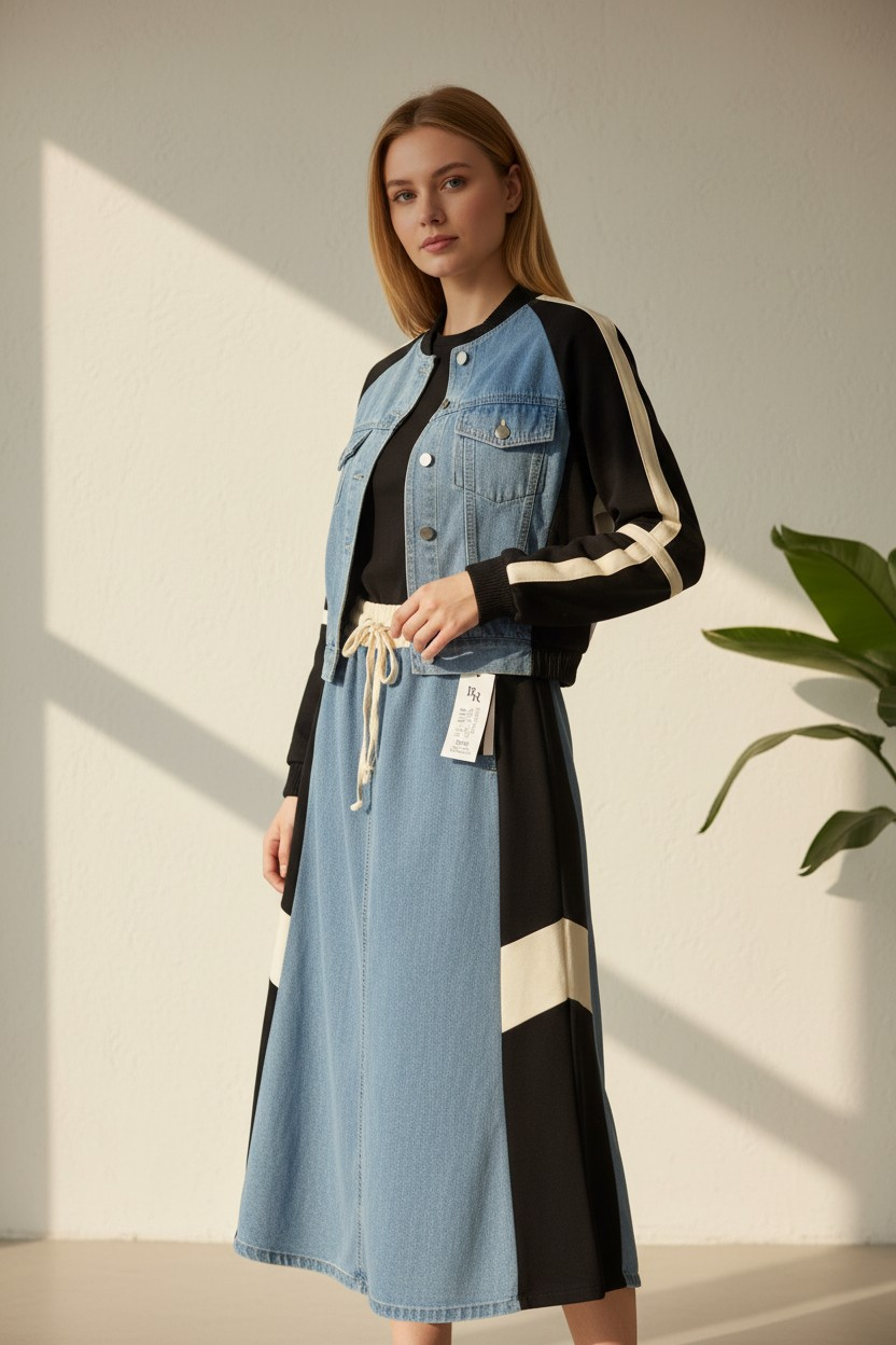 "Gardırobunuzun yeni favorisiyle tanışın! Jean şıklığını konforla birleştiren bu özel takım, hem hafta sonu kahvaltılarına hem de günlük şehir turlarınıza eşlik etmek için tasarlandı. Yumuşak dokusu ve modern kesimiyle gün boyu rahatlık sunarken, stilinizden ödün vermenizi engeller.